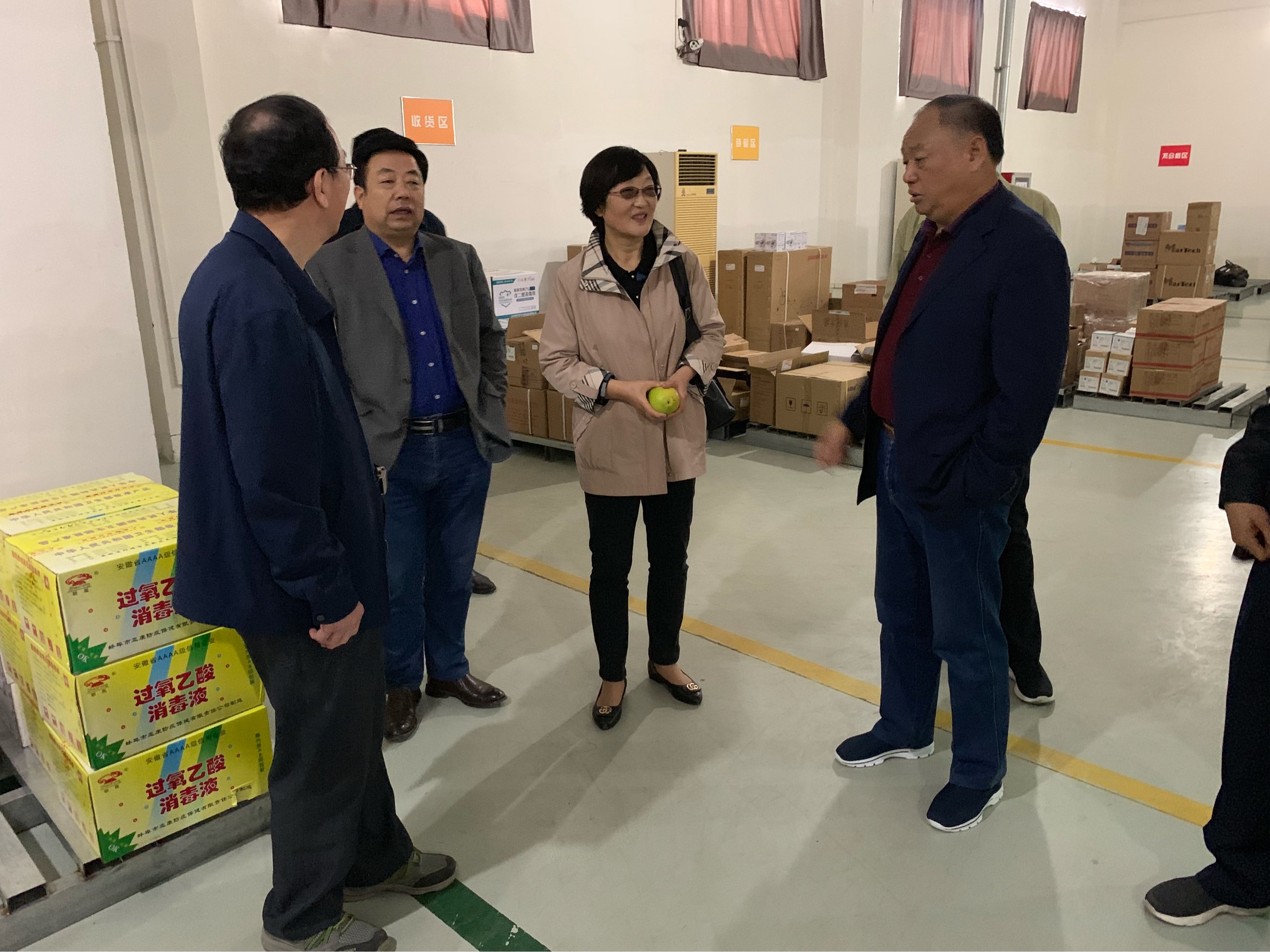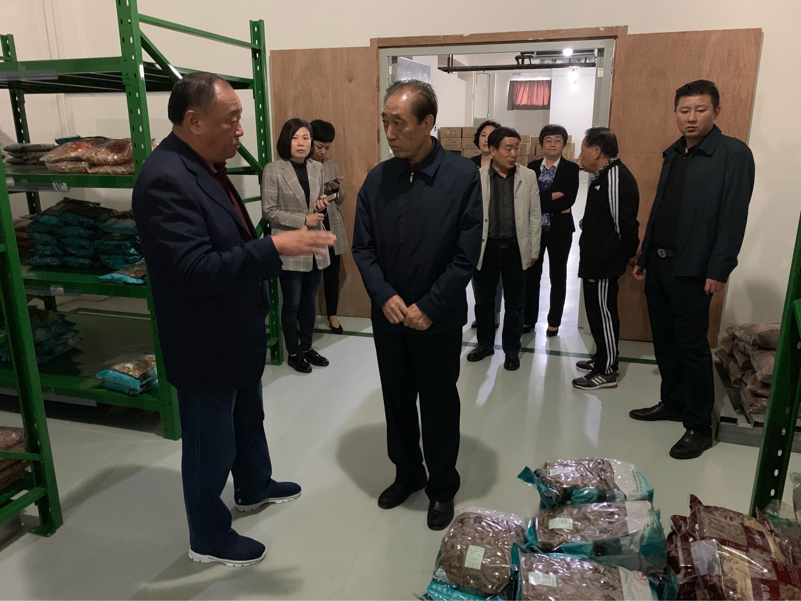 老領導楊愛光一行在江鴻方董事長陪同下,饒有興致地參觀了康寶藥業公司的庫房。
